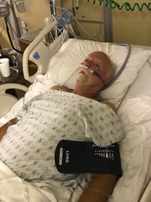 My nurse daughter was allowed to sneak into his room to see him after her shift I believe daily. She did her best to protect and encourage him to eat and stay positive. Dan had no appetite and his oxygen was increased and he had to wear a Bi Pap mask also while he slept. This continued to wear him down and frustrate him.