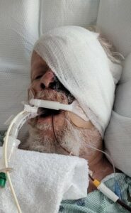 Isolated from family with no means of communication, Janet received a call from the hospital that Harold had a bruise had developed near his eye. With Janet’s  permission to do a biopsy, it was discovered that Harold had RMC, Rhinocerebral Mucormycosis,  an aggressive deadly fungal infection found in soil or water.