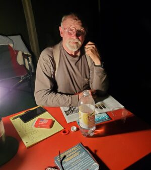 Saturday, August 28, 2021, while out of town at Michael’s high school reunion across the state, we began to exhibit symptoms of something and drove home to quarantine. Our PCP refused us early therapeutics. But after a week a telemed provider prescribed steroids, and antibiotics and found mab in our area, which we both received. Eighteen days after the onset of symptoms, the telemed provider advised us to get Mike to the hospital for oxygen and fluids.