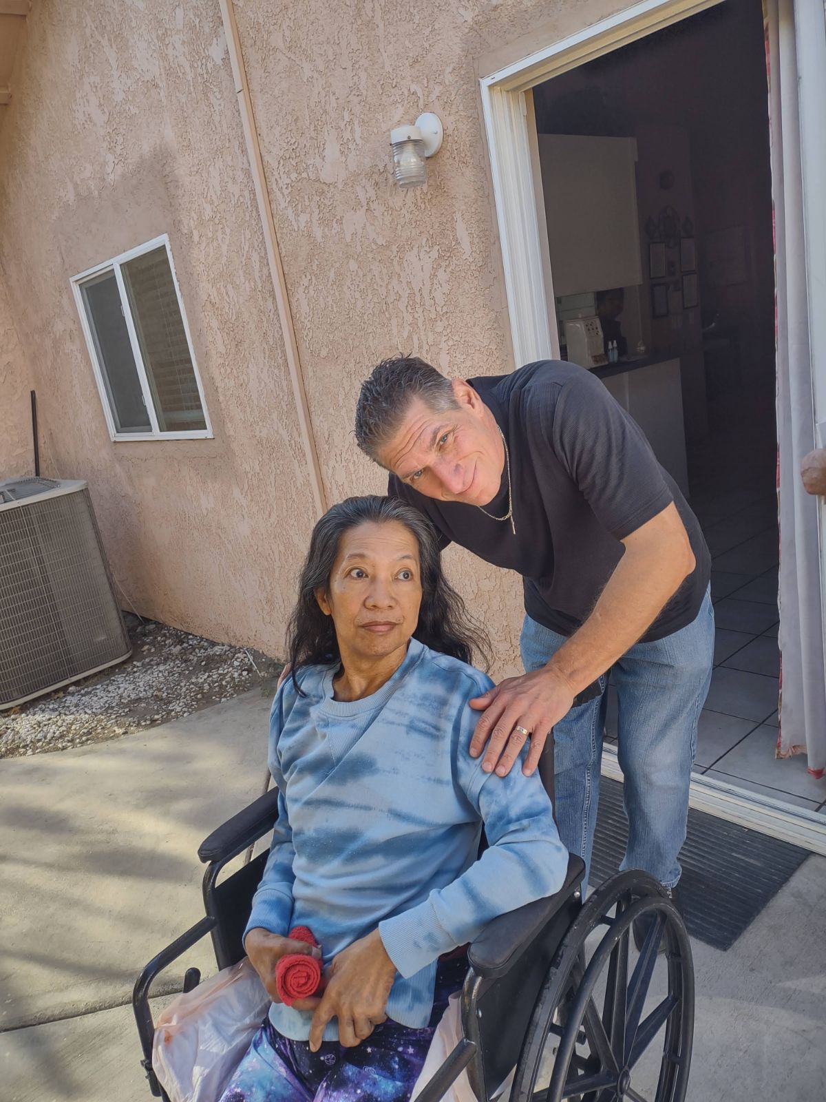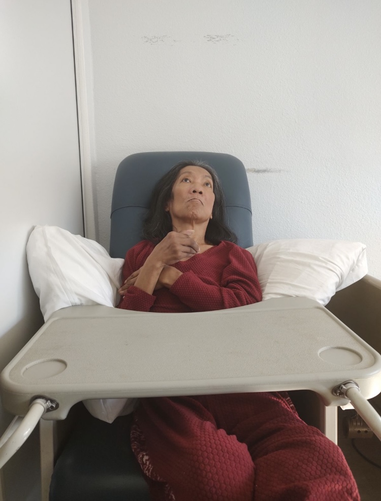 A month later, at 3:00 am on March 9th 2022, I was getting ready for work, when she screamed she couldn’t see, when I went into see her I could see her twisted into a ball and terrified. I raced her to the hospital in the ER I was told she had blood clots on her brain. When she took the booster she had multiple seizures and strokes all at the same time . They were able to resolve them however she was now completely blind, paralyzed on her right side, and after 25 yrs of marriage she doesn’t know who I am. This March 9th will be 4 years.  Her diagnosis from the ER was cerebral infarction due to unspecified occlusion, or stenosis of the left middle cerebral artery. Because she is paralyzed, blind, and has no memory of who i am, other than possibly recognizing my voice, I was forced to place her in a 24/7 full time care facility for the daily care that she requires. I visit her and feed her her meals every day, but i believe that as soon as i am gone, she doesn’t remember that i was there. Its a heartbreaking situation happening to a mid-fifty year old woman who loved life, loved our animals and loved me. Because of the convincing lies told to us by the government and supported by the media, my wife took the vaccines, and we lost our life together.